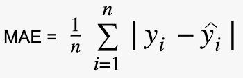 MAE는 예측값과 실제값 차이의 절대값 평균을 계산합니다.