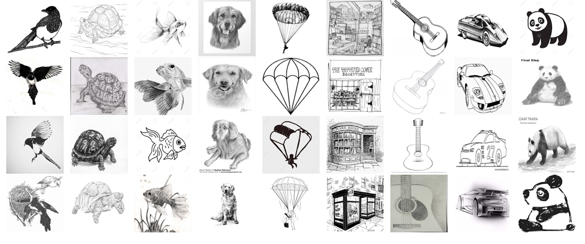먼저 dataset을 분석해보았을때 같은 이미지에 augmentation만 취한듯한 스케치가 다수 존재함을 파악하였습니다.